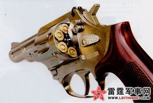 据介绍,这种转轮手枪属警察专用枪,系中国公安部首次投资并自己组织力量设计的第一支警用枪。其最大优点是故障率低,可使用橡皮子弹,五米之外不会致人于死地,有利于警察震慑并抓捕嫌犯。中新社发慎重摄